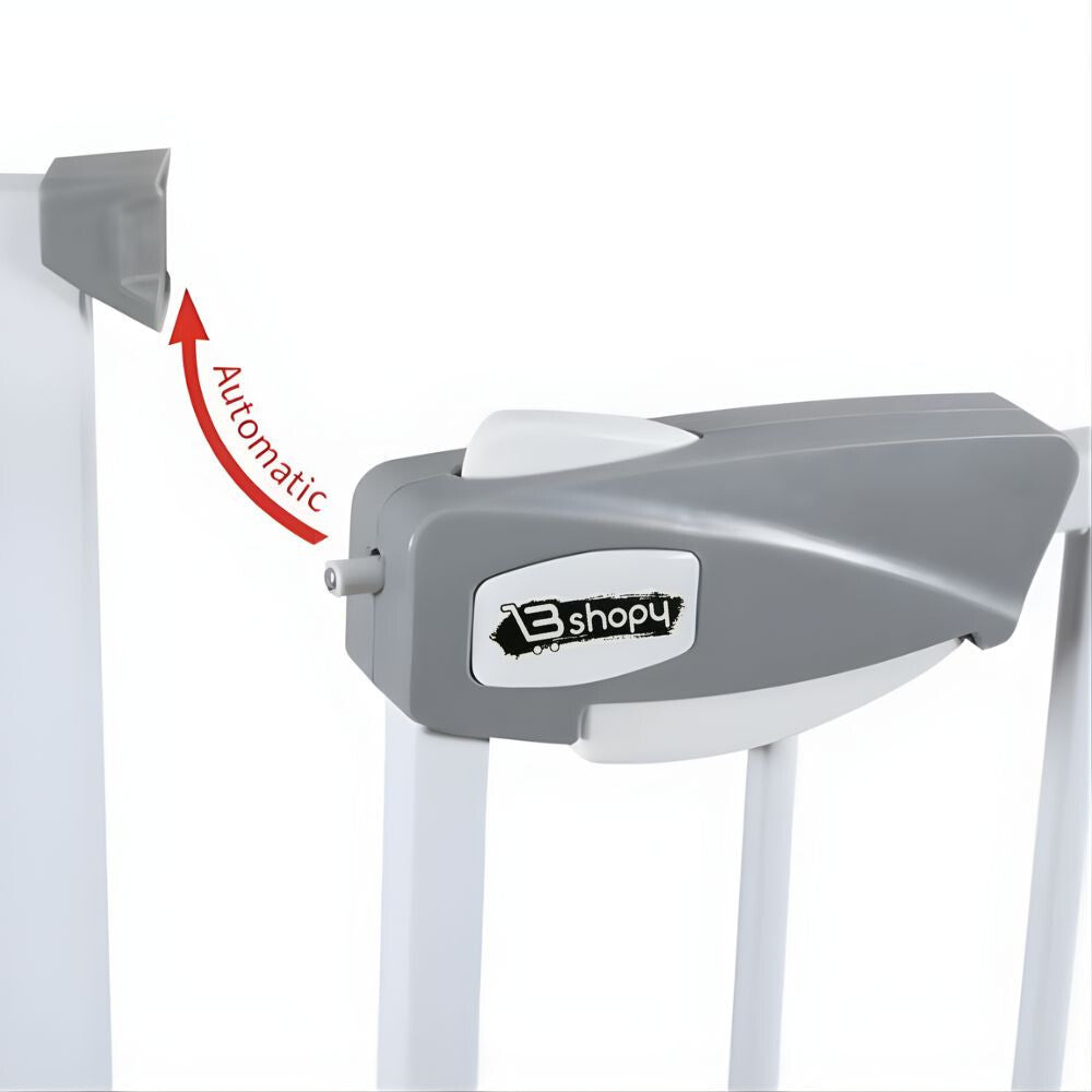 Poarta previne accesul copilului în zone periculoase, cum ar fi partea de sus sau de jos a scărilor. Structura metalică stabilă și sistemul de închidere asigură utilizarea în siguranță. - Închidere dublă de siguranță