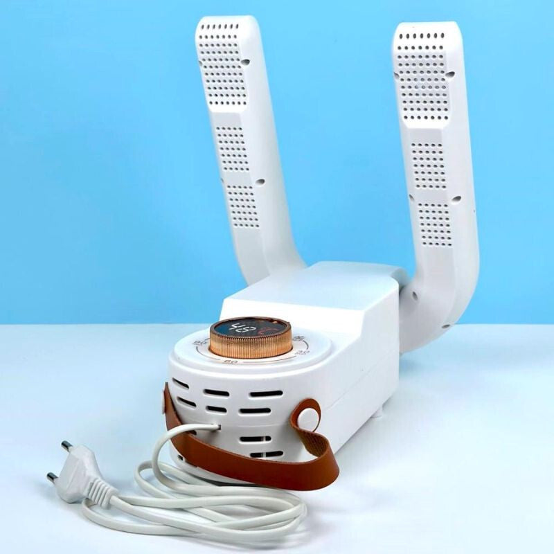 Acest uscător electric de încălțăminte cu lumină UV și temporizator este partenerul perfect pentru tratarea rapidă și igienică a încălțămintei umede.