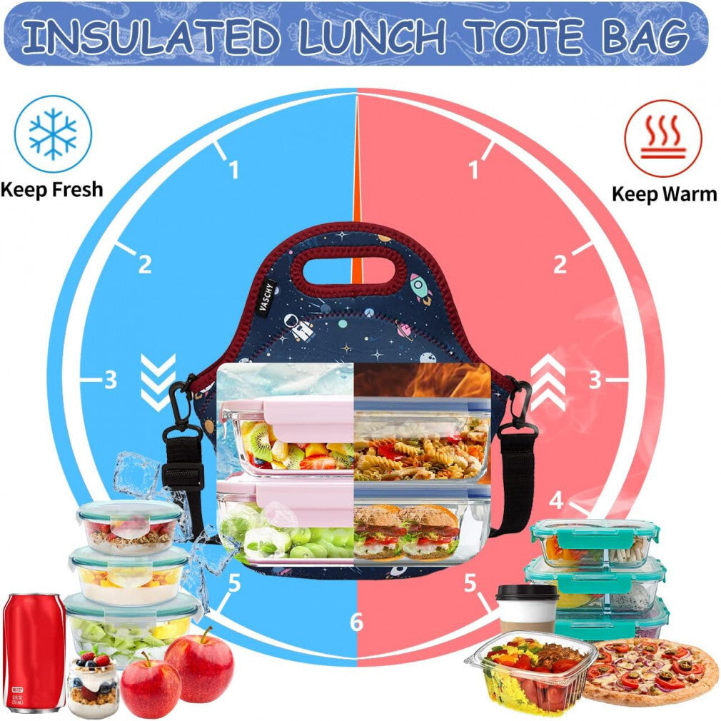 - Geantă de prânz izolată, reutilizabilă, cu design la modă de la Vaschy, ideală pentru muncă, școală, facultate, camping sau picnic. Recomandată pentru copii de la 3 ani în sus.