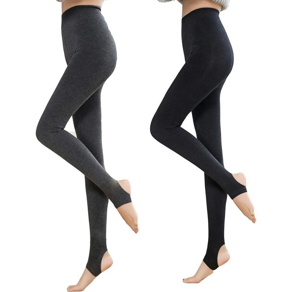 Yulaixuan Colanți Dama din Bumbac - Set 2 bucăți, Fără Vârf, Gri și Negru